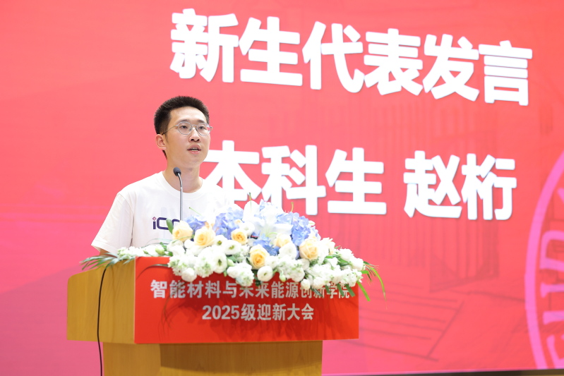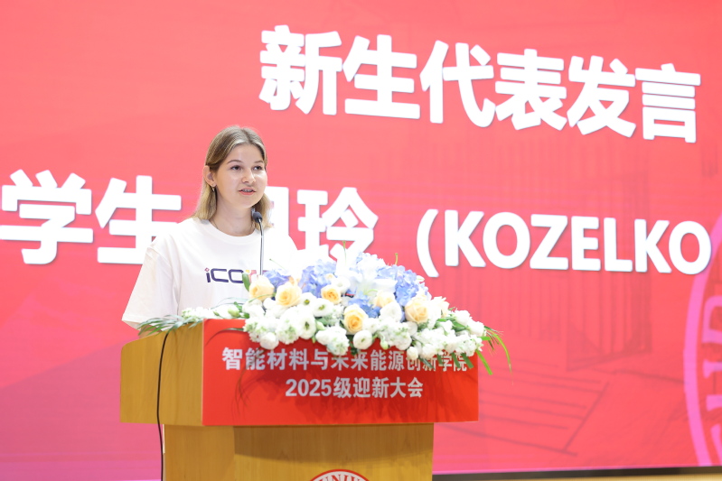 随后,新生代表依次发言。本科生1班赵桁以“人生从轨道走向旷野”的思考,表达了对未来学习的责任与信心。本科生2班月琳(Elena Kozelko)结合自己从俄罗斯到中国求学的经历分享了跨文化求学的感受,表达了在智能材料与未来能源创新学院逐梦科研的坚定信念。研究生代表张哲昊回顾了本科期间在科研实践中的收获,强调要将知识转化为成果,服务国家需求,并在第41个教师节来临之际,代表2025级全体新生祝学院老师教师节快乐!