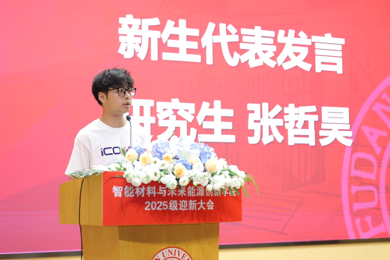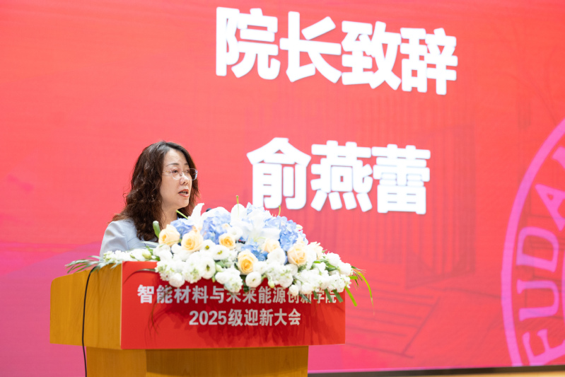 最后,执行院长俞燕蕾致辞。她代表学院对2025级全体新生表示热烈欢迎,并结合自身科研经历,寄语同学们“筑牢根基、追求学术本真;交叉融合、激发创新动能;心系家国、勇担时代重任”。俞院长期待同学们珍惜在复旦的时光,成长为党和国家最需要的拔尖创新人才,为新质生产力发展和强国建设贡献青春力量。