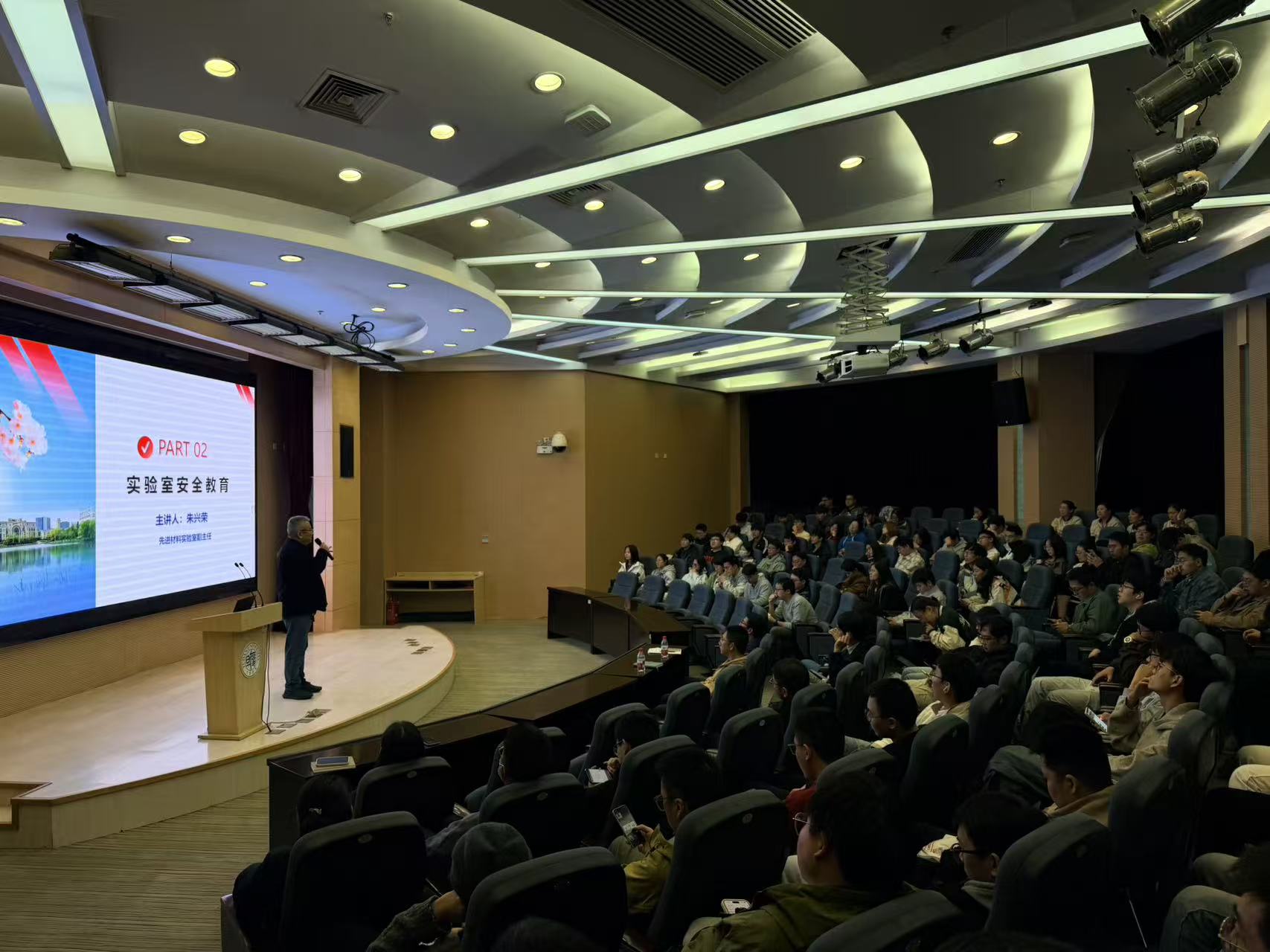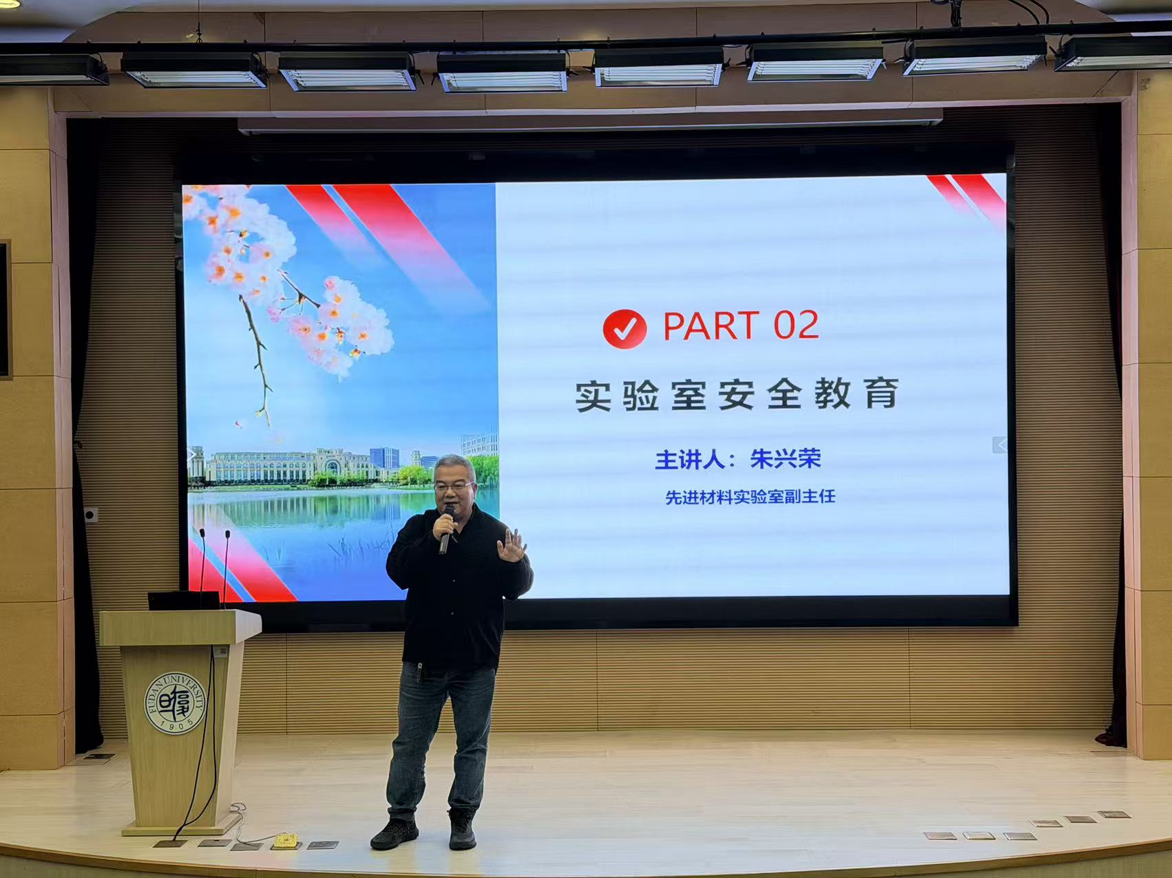 随后,先进材料实验室副主任朱兴荣老师给在场师生进行了安全教育。朱老师结合实验室实际情况以及安全检查过程中发现的安全隐患,详细讲述了实验室日常管理中应当注意的安全事项。讲座极具警示性和教育意义,为在场师生敲响了消防安全的警钟,有效筑牢了心中的“防火墙”。
