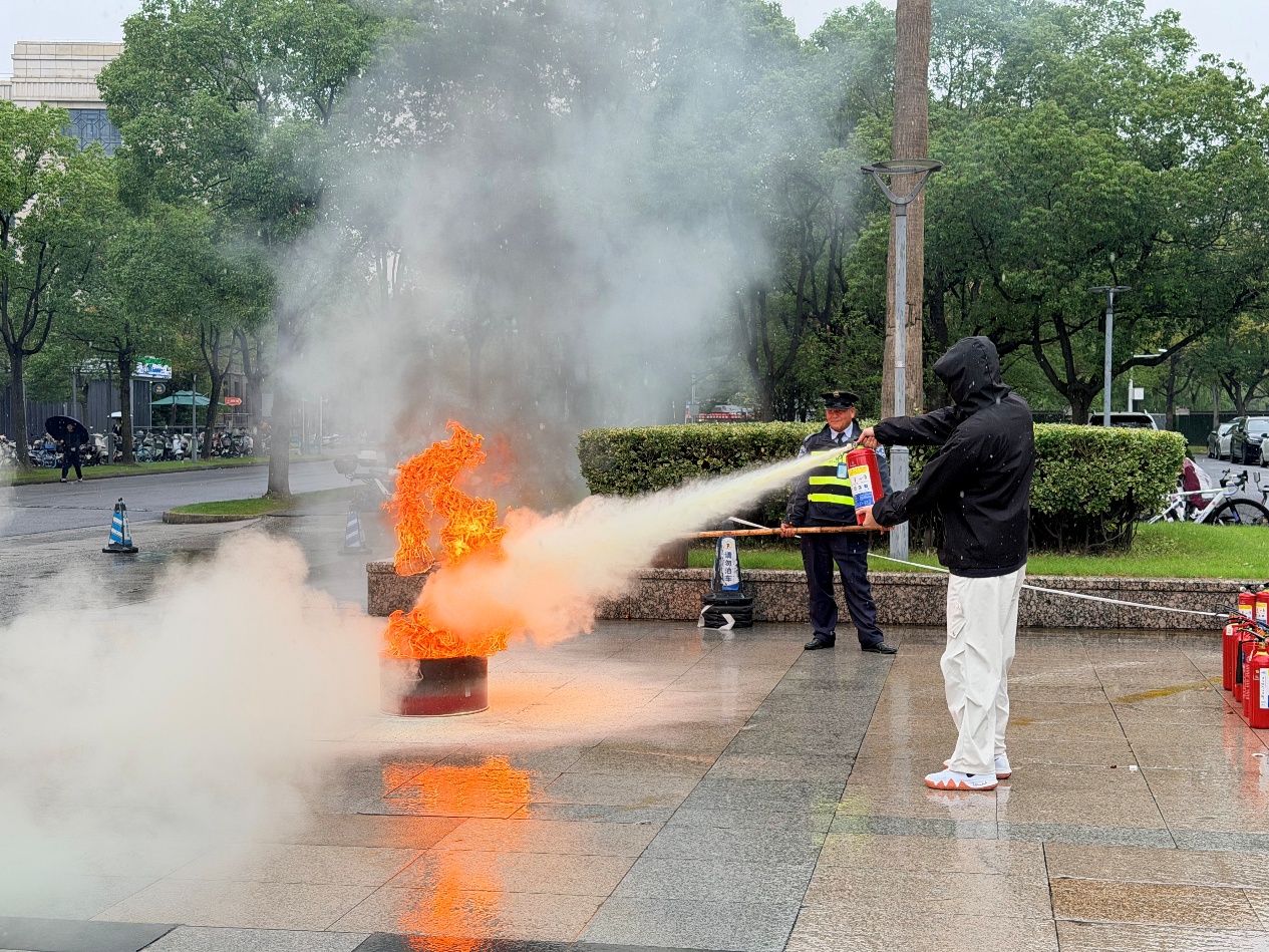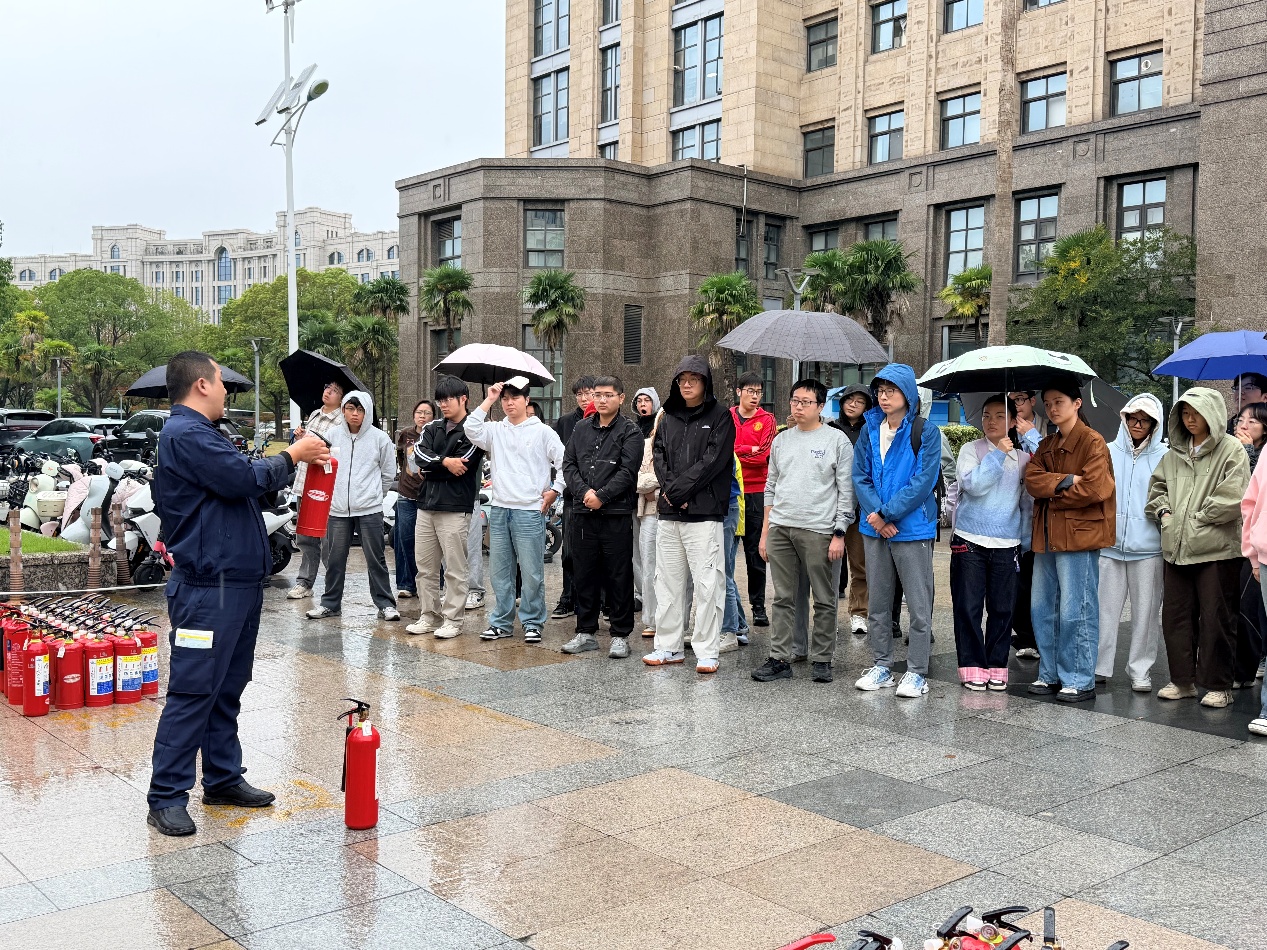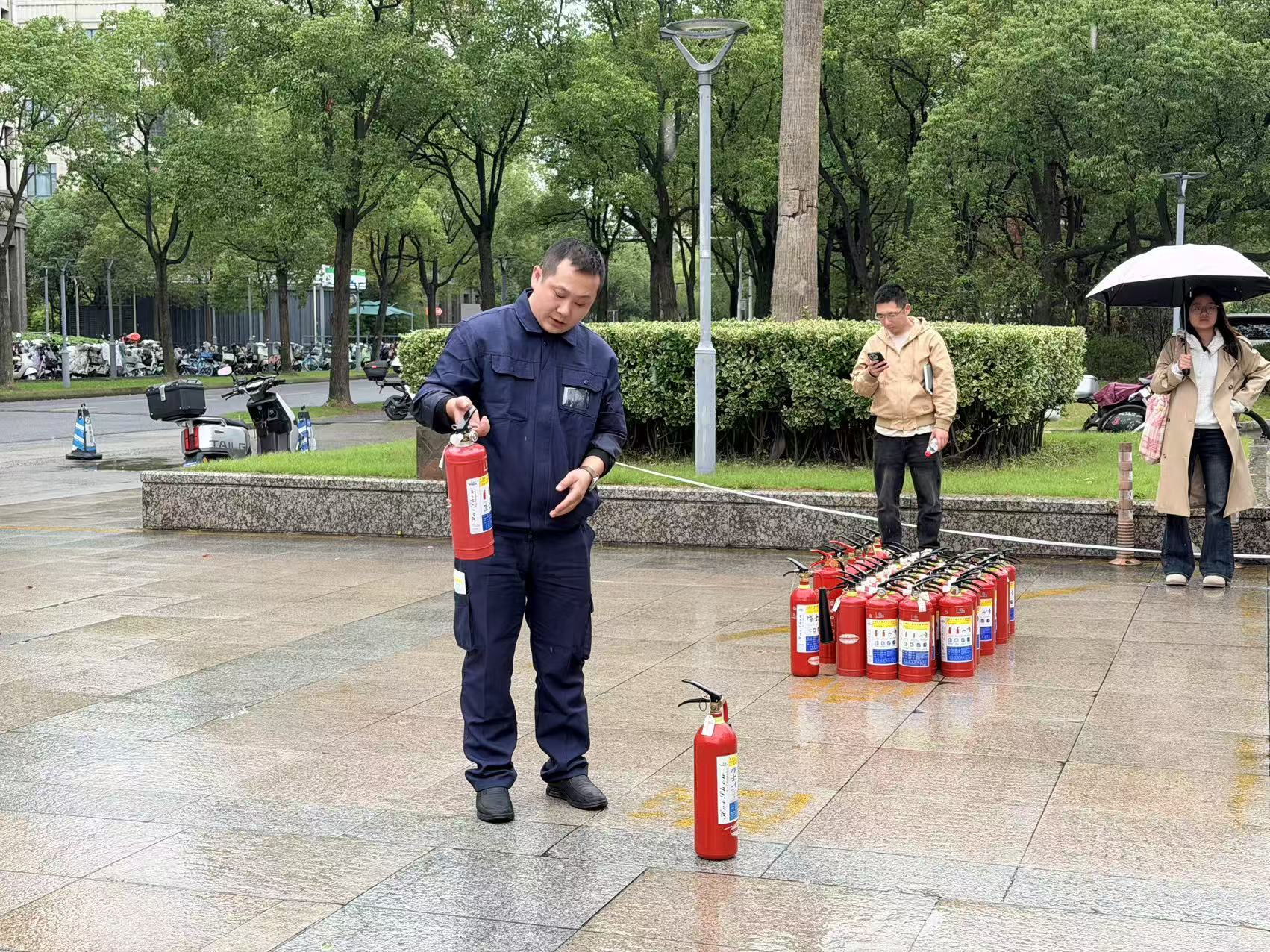 理论讲座结束后,全体参会师生移步至先进材料楼楼前空地,投入到灭火器使用实操演练中。保卫处专业人员首先现场演示了干粉灭火器的正确操作步骤,详细讲解了“提、拔、握、压”四大使用要领以及注意事项。在专业人员的悉心指导下,师生们纷纷踊跃上场,亲身体验了从判断风向、拔掉保险销到对准火焰根部喷射的完整灭火过程。通过“零距离”的实战演练,大家成功将理论知识与实际操作相结合,克服了面对火情时的紧张心理,切实掌握了扑救初起火灾的“硬功夫”。