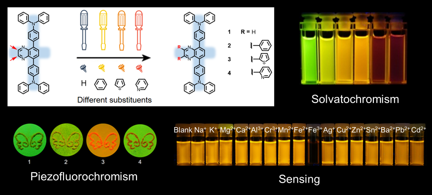 (4) Y. Chen, Y. Ling, L. Ding, C. Xiang, G. Zhou,* Quinoxaline-Based Cross-Conjugated Luminophores: Charge transfer, Piezofluorochromic, and Sensing properties,J. Mater. Chem. C,2016,4, 8496–8505.
