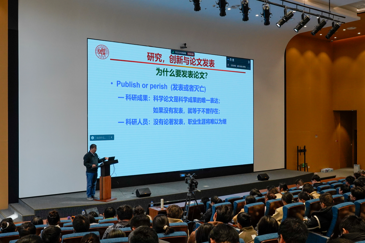 2025318日下午,由复旦大学先进材料实验室团委与研究生会共同主办的“英语科技论文——撰写与投稿”专题讲座(第一讲)在江湾校区化学楼周林林报告厅拉开帷幕。中国科学院院士、复旦大学化学与材料学院院长赵东元教授结合自身丰富的科研与育人经验,系统阐述了科技论文写作的方法论,吸引了线上线下四百余名师生参与,讲座现场座无虚席。
