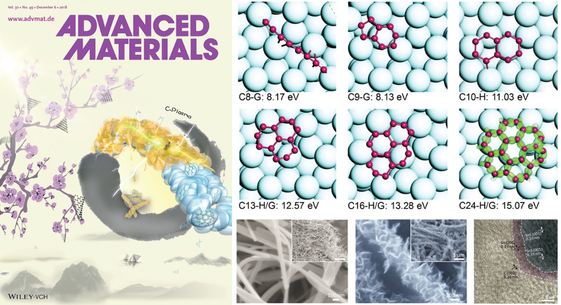 • D. Chao, B. Ouyang, P. Liang, T.T.T. Huong, X. Xia, R.S. Rawat, H. J. Fan*, C-Plasma of Hierarchical Graphene Survives SnS Bundles for Ultrastable and High Volumetric Na-Ion Storage, Adv. Mater., 1804833 (2018). (Cover paper)