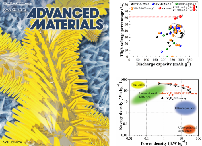 • D. Chao, X. Xia, J. Liu, Z. Fan, N. Chin, J. Lin, H. Zhang, Z. Shen*, H. J. Fan*, A V2O5/Conductive-Polymer Core/Shell Nanobelt Array on Three-Dimensional Graphite Foam: A High-Rate, Ultrastable, and Freestanding Cathode for Lithium-Ion Batteries,Adv. Mater., 26, 5794 (2014). (ESI Highly Cited paper, Cover paper)
