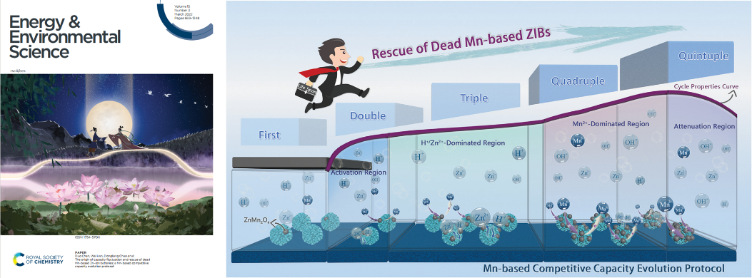 • H. Yang, W. Zhou, D. Chen*, J. Liu, Z. Yuan, M. Lu, L. Shen, V. Shulga, W. Han*, D. Chao*, The Origin of Capacity Fluctuation and Rescue of Dead Mn-based Zn–Ion Batteries: A Mn-based Competitive Capacity Evolution Protocol. Energy Environ. Sci. 15, 1106-1118 (2022). (Back Cover)