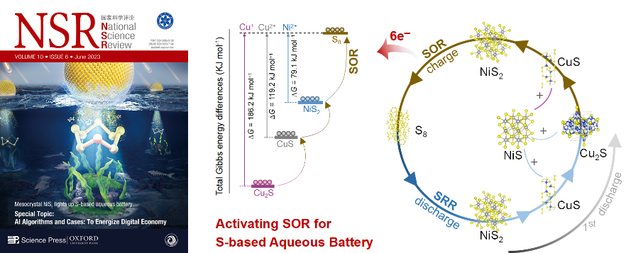 • Z. Yang, B. Wang, Y. Chen, W. Zhou, H. Li, R. Zhao, X. Li, T. Zhang, F. Bu, Z. Zhao, W. Li, D. Chao*, D. Zhao*, Activating Sulfur Oxidation Reaction via Six-Electron Redox Mesocrystal NiS2 for Sulfur-based Aqueous Batteries. National Science Review 10, nwac268 (2023). (ESI Highly Cited paper, front Cover)