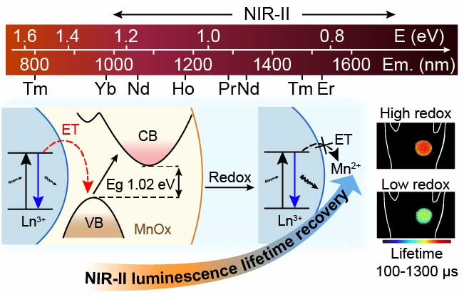 5.M. Zhao, H. Zhuang, H. Zhang, B. Li, J. Ming, X. Chen*, M. Chen* A LRET Nanoplatform Consisting of Lanthanide and Amorphous Manganese Oxide for NIR-II Luminescence Lifetime Imaging of Tumor Redox Status. Angew. Chem. Int. Ed., 2022, 61, e202209592.