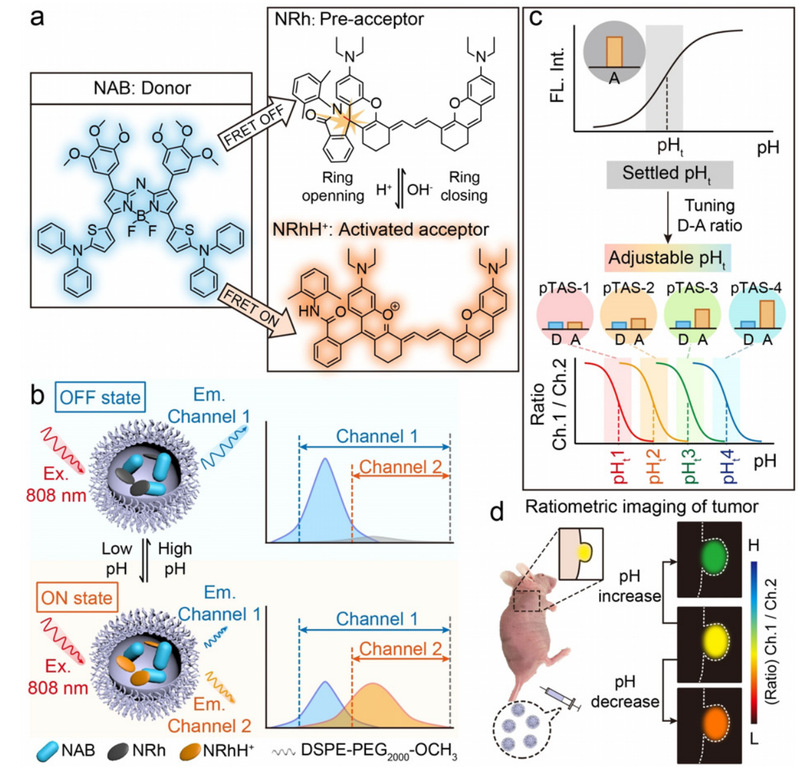 9.M. Zhao#, J. Wang#*, Z. Lei, L. Lu, S. Wang, H. Zhang, B. Li, F. Zhang* NIR-II pH Sensor with FRET Adjustable Transition Point for In Situ Dynamic Tumor Microenvironment Visualization. Angew. Chem. Int. Ed., 2021, 60, 5091.