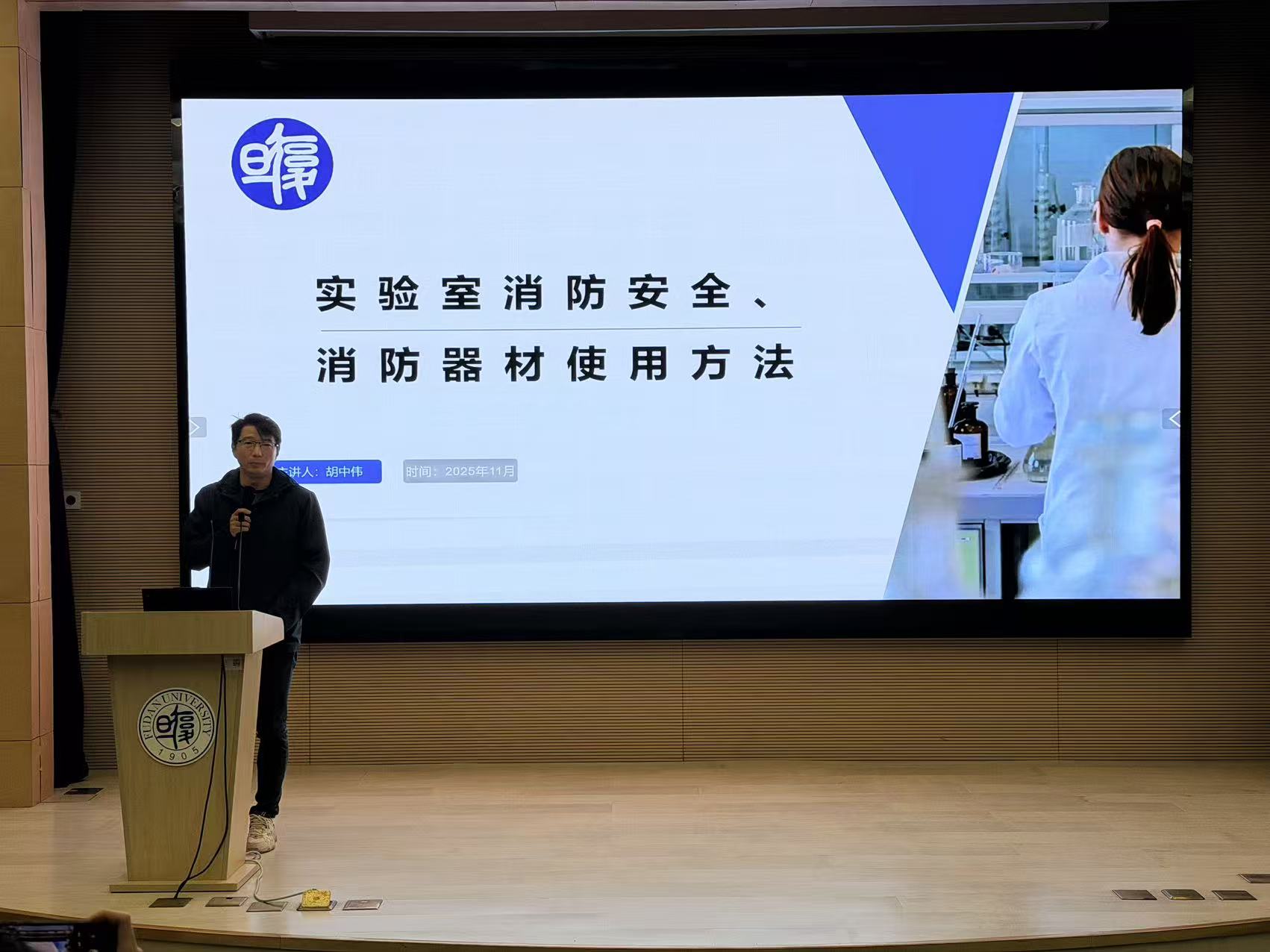 本次讲座特邀复旦大学保卫处具有丰富消防管理经验的胡中伟老师担任主讲。胡老师结合高校实验室和日常生活场景中常见的火灾隐患,通过真实的案例、详实的数据,深入浅出地讲解了火灾的成因、预防措施、火场逃生要领以及报警注意事项等关键知识。
